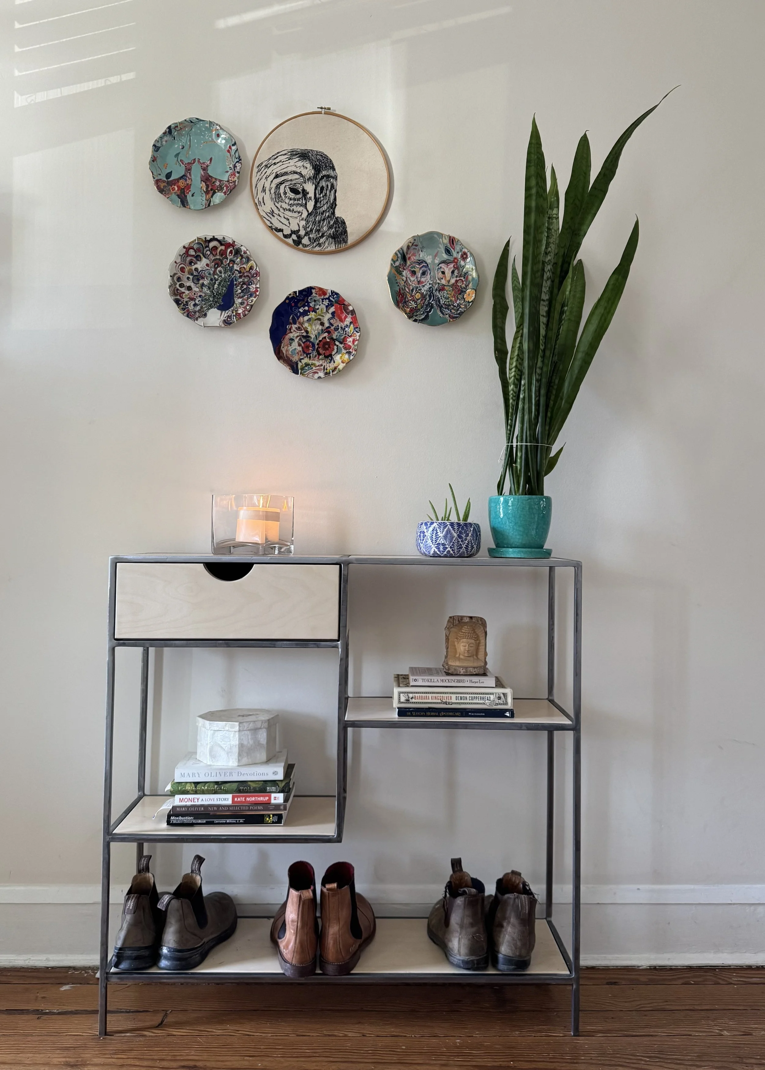 This is Andrea, the human and craftswoman behind Soul Crafted Studio. After years in the tech industry, she longed for a more hands-on, creative pursuit—something tangible that reflected her passion for design and craftsmanship. With a vision to build a woodworking and metal shop where she could bring ideas to life, she embarked on the challenging journey of transforming an empty space into a fully functional workshop. The process required long hours and determination, but step by step, she shaped her vision into reality. Now, the business stands as a testament to her dedication, blending artistry and skill into every piece she creates.